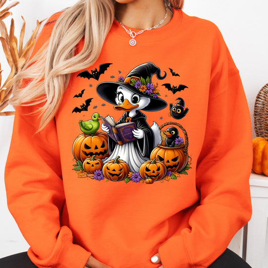 Gildan Safety Orange sweatshirt Halloween duck graphic crewneck