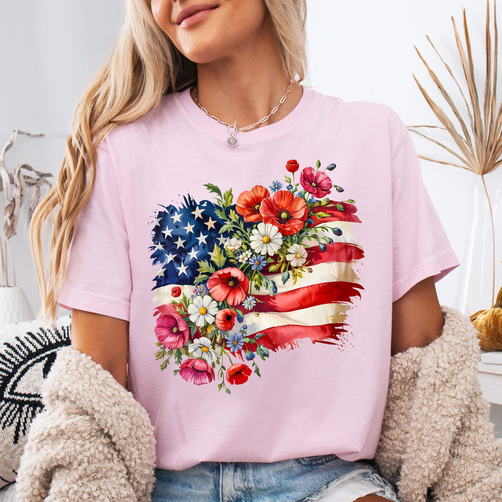 Pink Blossom Comfort Colors Patriotic Graphic T-shirt.